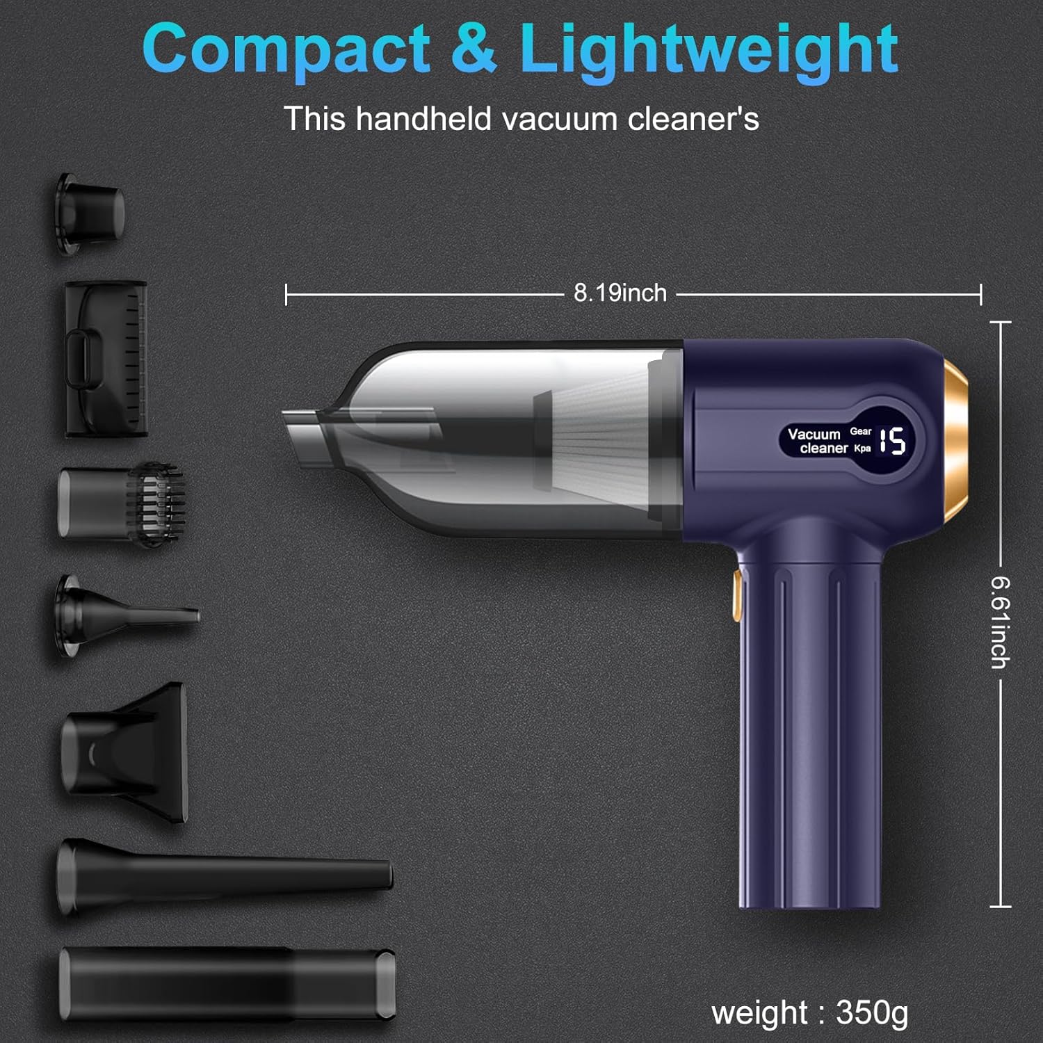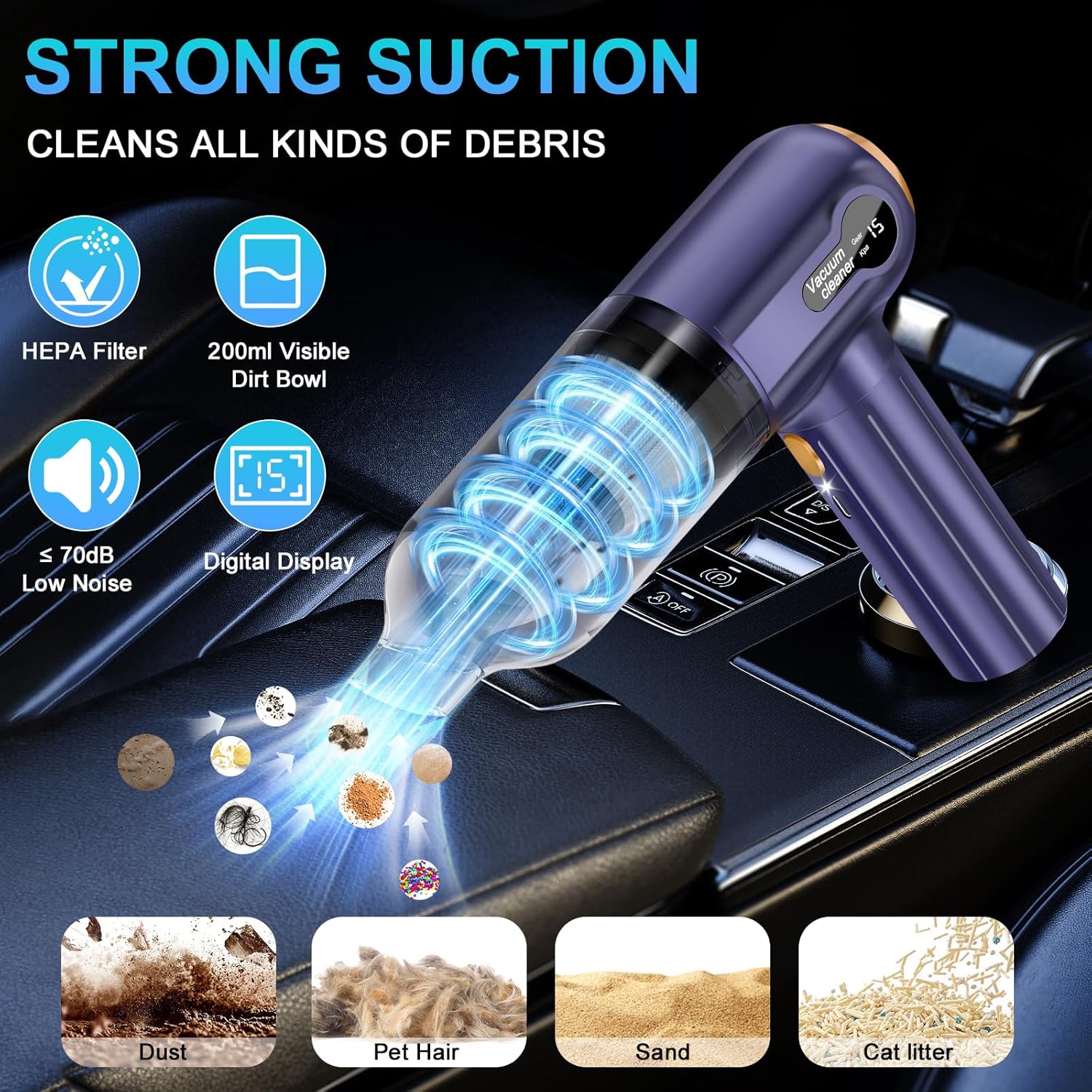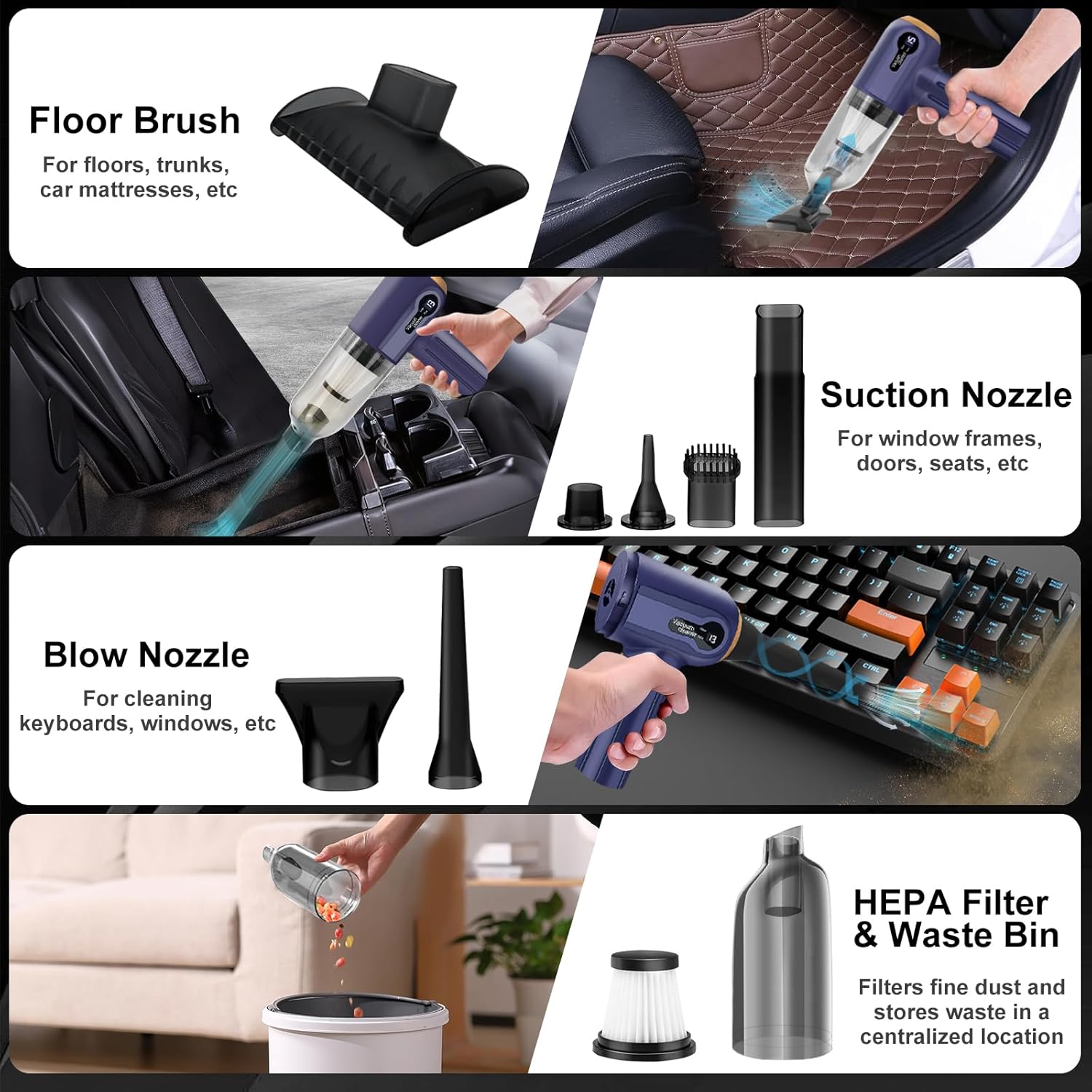 Puissant, léger et rechargeable, idéal pour voiture, maison, bureau et poils d’animaux.