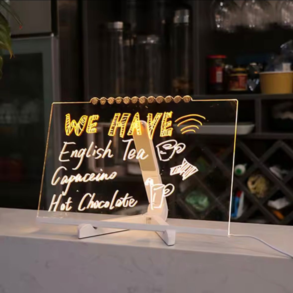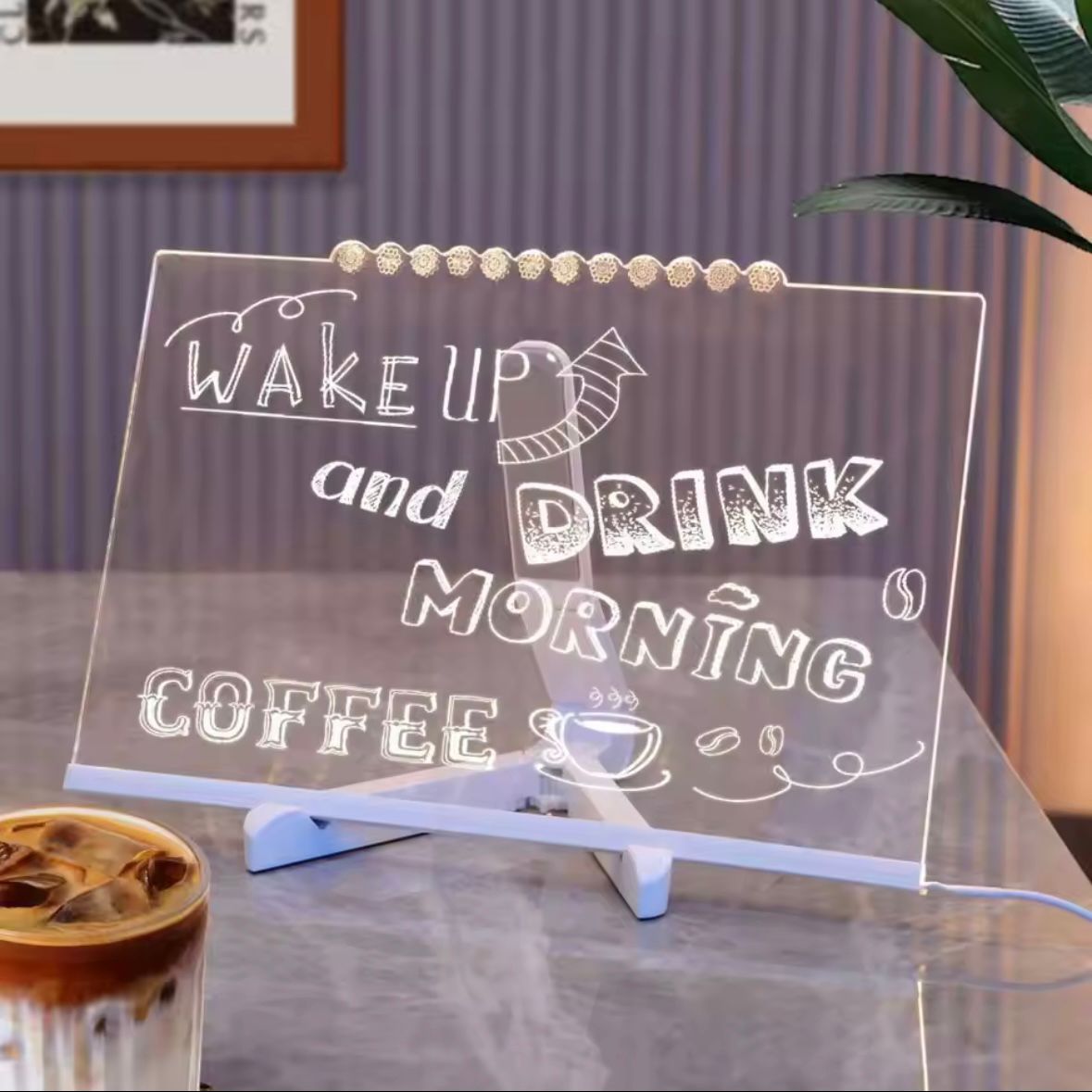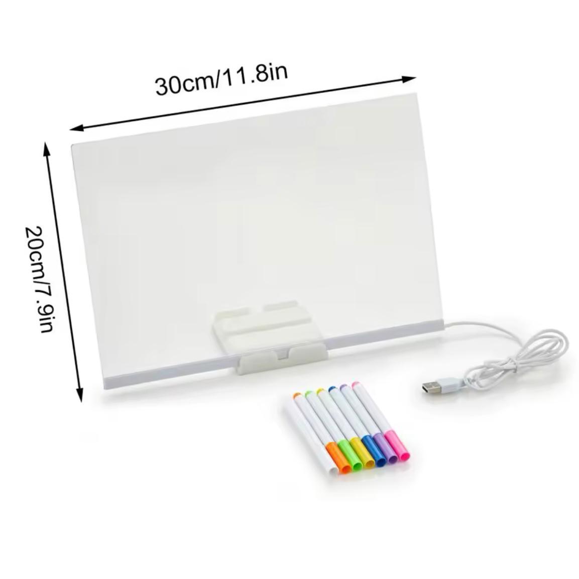 Tableau mémo lumineux à LED avec couleurs lumineuses, tableau d'affichage transparent en acrylique, tableau d'écriture transparent imitation pour enfants