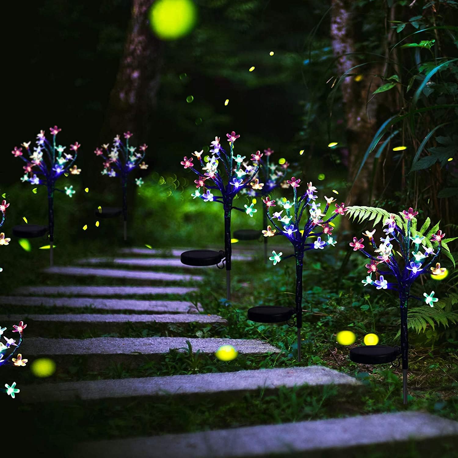 Tiges réglables. Les tiges florales sont soutenues par un fil de fer, extrêmement flexible et durable. Elles peuvent être pliées selon différents angles et styles, ce qui facilite leur installation dans les plantes. Cet arbre solaire coloré au paysage féerique est un véritable clin d'œil au conte de fées. Allumé la nuit, il vous fera recevoir de nombreux compliments de la part de vos voisins.