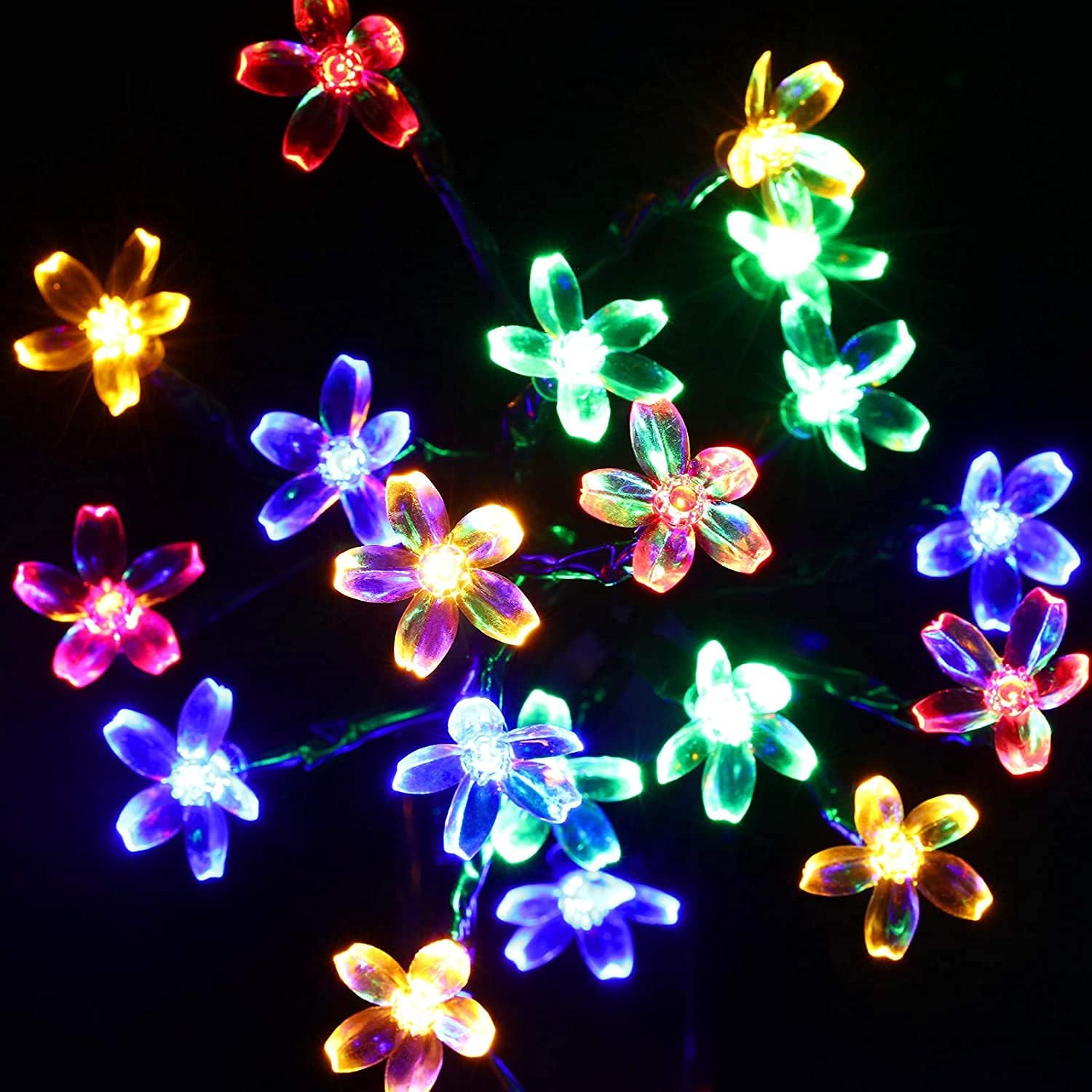 【Solaire amélioré】La fleur solaire est équipée de 20 magnifiques fleurs de cerisier LED, offrant une luminosité accrue et des couleurs plus vives. 8 à 12 heures d'autonomie en plein soleil. (L'autonomie dépend des conditions météorologiques)
