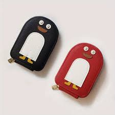 Porte-cartes de crédit en cuir PU Pingouins mignons, sac de rangement, porte-monnaie portable léger pour femmes, mini portefeuille avec fermeture éclair pour filles